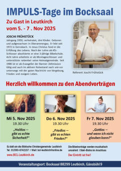 BIBELSEMINAR & HAUSKREISJeden Samstag um 19.00 Uhr laden wir ein, in familiärer Atmosphäre die Bibel und unseren christlichen Glauben besser kennenzulernen. Gerne kommen wir darüber auch ins Gespräch miteinander. Auf Absprache findet das Seminar einmal im Monat im privaten Umfeld statt (siehe Gemeinde-Info)
